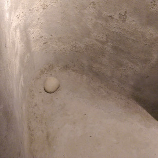 到了門口停好車拖了雨衣,左腳一下去小碎石碎動聲音,如同感應門一樣告知我們到了。在這小小的森林裡懸挑在巨石上的人造物是如此穩固安定,但在綿綿細雨的染色下,卻又光滑如同雙色鏡面蛋糕般精緻可口。然而往前一踏才發現,這巨石是一堵有溫度的土牆,憨厚的捲縮成了個洞穴。一看到入口就只會撫摸牆體紋路自然的被咖啡香誘惑著,微弱的燈光和兩個天窗讓你慢慢的習慣這空間的大小、形狀、方向、吧檯、家具。才注意到下方還有一條線狀開口,隱約窺視著一方池子被雨滴敲打的波紋。小小的咖啡廳實在過分浪漫,實在不忍在此用餐。