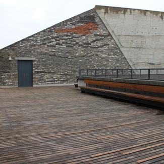 富饒的土地孕育出豐富的美食,複雜多變的佳餚,文化的歷史重地更是寧波人自己獨有的驕傲。而王澍的寧波美術館也是在這片寶地上紮根。 在成為建築師以前我是一位文人。 聚落般的展廳和中庭四合院精神,看似簡單的概念,但一個聚落的成長是多少居住者一代一代隨著時間和大自然的巧妙共生變化的累積下所產生的,豈是複製個量體關係就能代表的呢?就算是現在也不太相信這一套理念的複製能應用在博物館上面,展館也沒有開放,也就隨意晃晃。